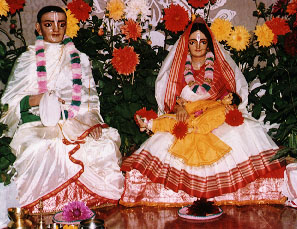 \Sri Jagannath Misra Prabhu and his wife Srimati Saci Mata with little Nimai Pandit in Sridham Mayapur, at the birthplace of Nimai Pandit, who later became famous as Chaitanya Mahaprabhu, the Yuga Avatar for the age of Kali. His Sankirtan movement is today the driving force to organize the WVA with his followers from all over the world.